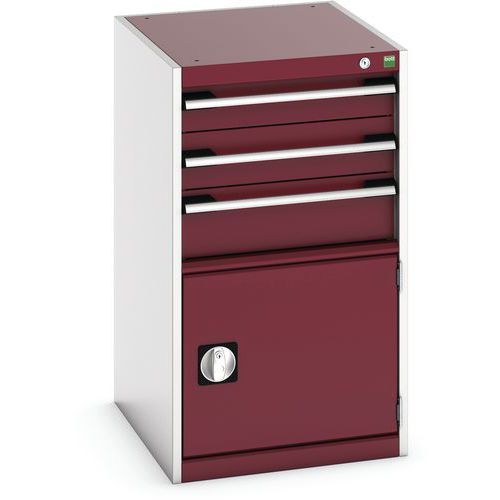 Műhely fiókos szekrény Bott Cubio, 90 x 52,5 x 65 cm, 3 fiók, 1 szekrény, szürke-piros Műhely fiókos szekrény Bott Cubio, 90 x 52,5 x 65 cm, 3 fiók, 1 szekrény, szürke-piros