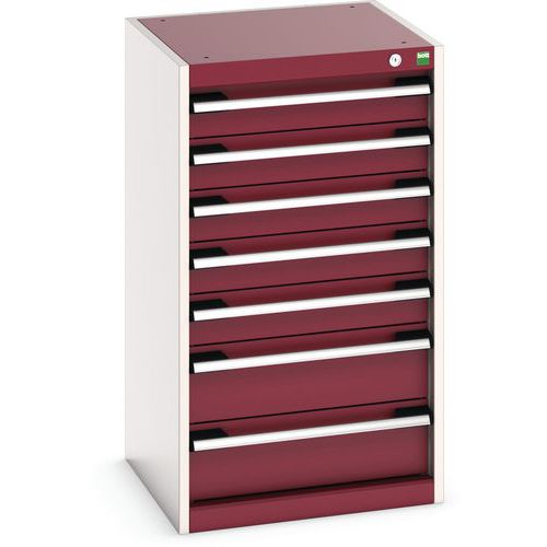 Műhely fiókos szekrény Bott Cubio, 90 x 52,5 x 52,5 cm, 7 fiókos, szürke-piros Műhely fiókos szekrény Bott Cubio, 90 x 52,5 x 52,5 cm, 7 fiókos, szürke-piros