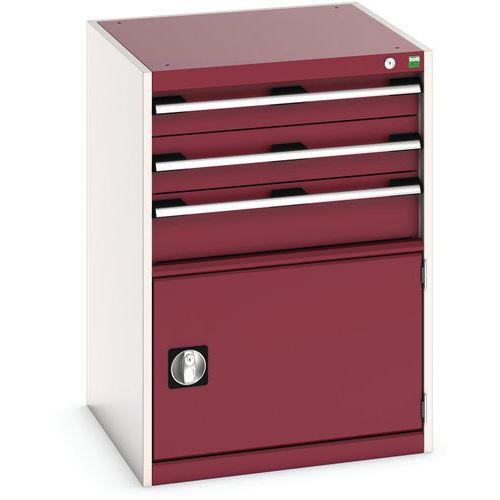 Műhely fiókos szekrény Bott Cubio, 90 x 65 x 65 cm, 3 fiók, 1 szekrény, szürke-piros Műhely fiókos szekrény Bott Cubio, 90 x 65 x 65 cm, 3 fiók, 1 szekrény, szürke-piros