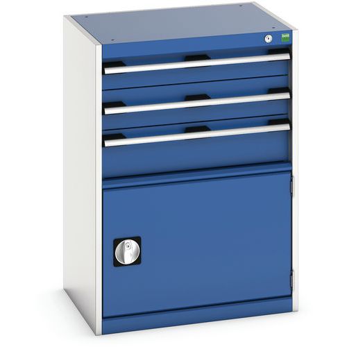 Műhely fiókos szekrény Bott Cubio, 90 x 65 x 52,5 cm, 3 fiók, 1 szekrény, szürke-kék Műhely fiókos szekrény Bott Cubio, 90 x 65 x 52,5 cm, 3 fiók, 1 szekrény, szürke-kék
