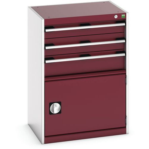 Műhely fiókos szekrény Bott Cubio, 90 x 65 x 52,5 cm, 3 fiók, 1 szekrény, szürke-piros Műhely fiókos szekrény Bott Cubio, 90 x 65 x 52,5 cm, 3 fiók, 1 szekrény, szürke-piros