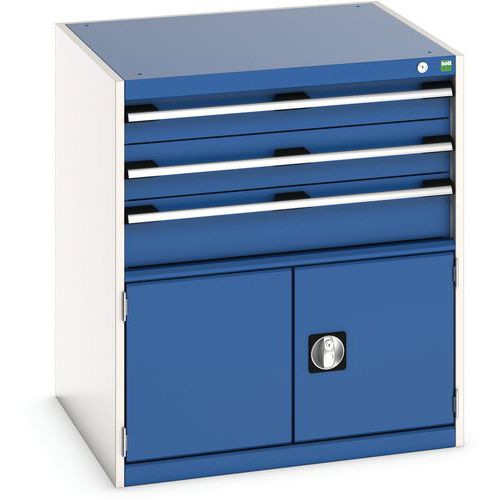 Műhely fiókos szekrény Bott Cubio, 90 x 80 x 75 cm, 3 fiók, 1 szekrény, szürke-kék Műhely fiókos szekrény Bott Cubio, 90 x 80 x 75 cm, 3 fiók, 1 szekrény, szürke-kék