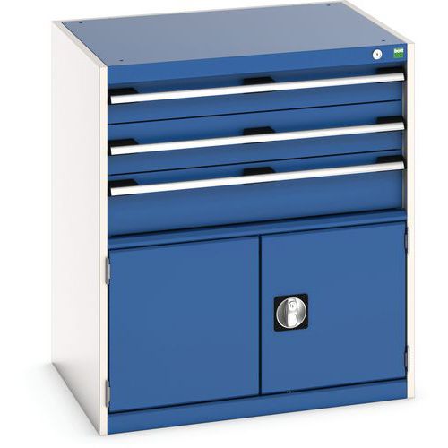 Műhely fiókos szekrény Bott Cubio, 90 x 80 x 65 cm, 3 fiók, 1 szekrény, szürke-kék Műhely fiókos szekrény Bott Cubio, 90 x 80 x 65 cm, 3 fiók, 1 szekrény, szürke-kék