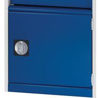 Bott Cubio fiókos szekrények 75 kg-os teherbírású és 100%-os görgőscsapágyakkal bővíthető fiókokkal. Szekrényajtó perforált belső oldallal a szerszámok tárolására. Magas hegesztett acél konstrukció akár 1,5 tonna teherbírással, porszórt bevonattal befejezni. Központi zárrendszerű zár és egyidejűleg több fiók nyitásának blokkolása. Ergonomikus fogantyúk írható csíkkal, zárás hengeres zárral, két kulccsal.