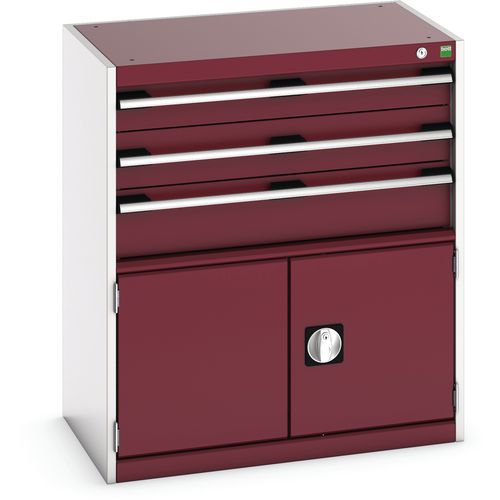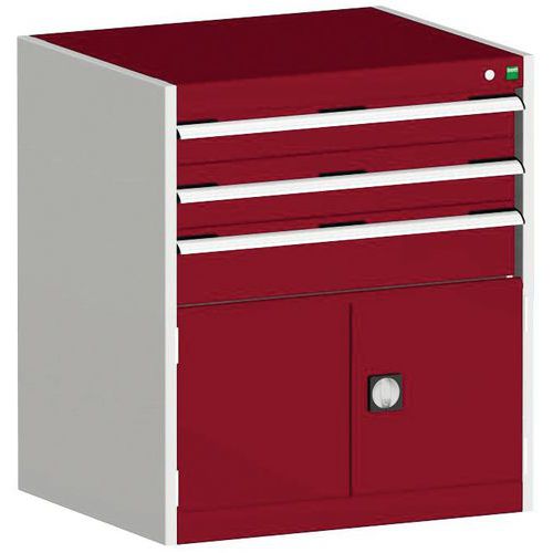 Műhely fiókos szekrény Bott Cubio, 90 x 80 x 52,5 cm, 3 fiók, 1 szekrény, szürke-piros Műhely fiókos szekrény Bott Cubio, 90 x 80 x 52,5 cm, 3 fiók, 1 szekrény, szürke-piros