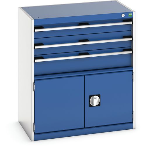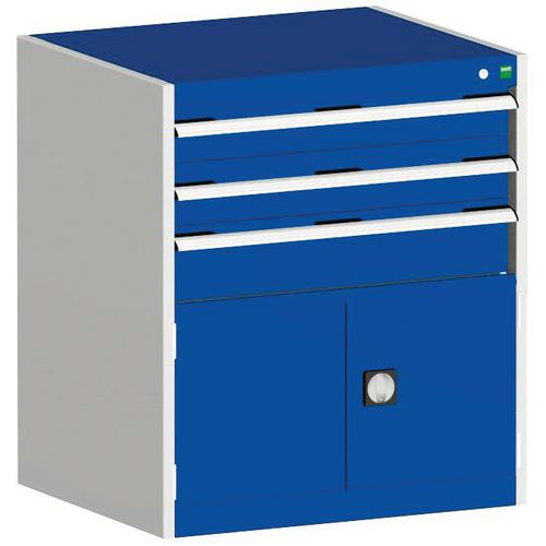 Műhely fiókos szekrény Bott Cubio, 90 x 80 x 52,5 cm, 3 fiók, 1 szekrény, szürke-kék Műhely fiókos szekrény Bott Cubio, 90 x 80 x 52,5 cm, 3 fiók, 1 szekrény, szürke-kék