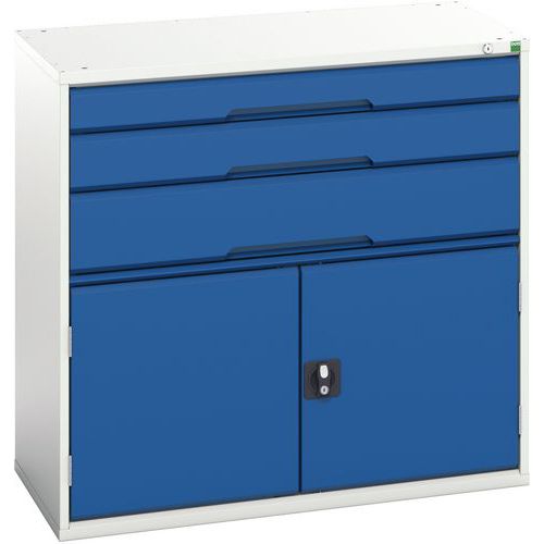 Műhely fiókos szekrény Bott Verso, 100 x 105 x 55 cm, 3 fiók, 1 szekrény, szürke-kék Műhely fiókos szekrény Bott Verso, 100 x 105 x 55 cm, 3 fiók, 1 szekrény, szürke-kék