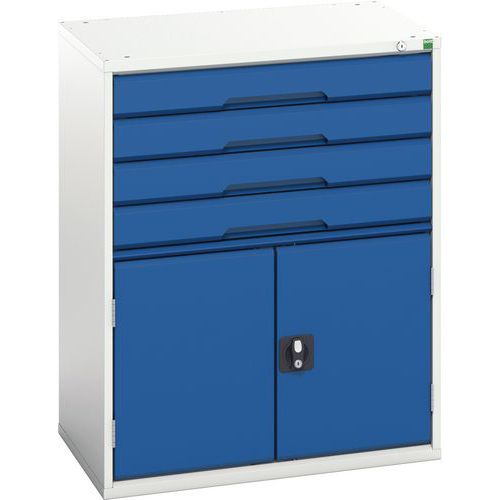 Műhely fiókos szekrény Bott Verso, 100 x 80 x 55 cm, 4 fiók, 1 szekrény, szürke-kék Műhely fiókos szekrény Bott Verso, 100 x 80 x 55 cm, 4 fiók, 1 szekrény, szürke-kék