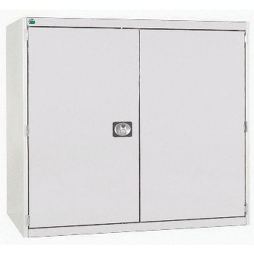 Fém műhelyszekrények polcokkal, 160 kg teherbírással. Megerősített szárnyas ajtók perforált belső oldallal a szerszámok tárolására. Magas hegesztett acél konstrukció akár 1,5 tonna teherbírással, porszórt felülettel. Zárás központi zárral hengerzár két kulccsal. . 25 mm-es lépésekben állítható magasságú horganyzott polcok.