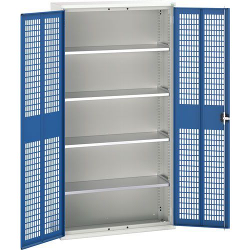 Műhelyszekrény polcokkal Bott Verso, drótajtó, 4 polc, 200 x 105 x 35 cm, szürke-kék Műhelyszekrény polcokkal Bott Verso, drótajtó, 4 polc, 200 x 105 x 35 cm, szürke-kék