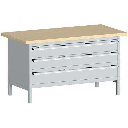 Műhelyasztal Bott Cubio Tároló, 84 x 150 x 75 cm, 3 fiók, linóleum/rétegelt lemez