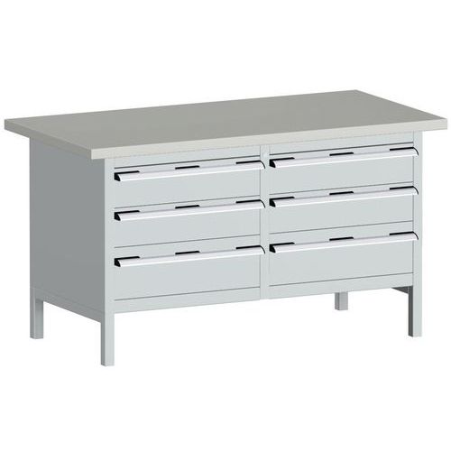Műhelyasztal Bott Cubio Tároló, 84 x 150 x 75 cm, 6 fiók, linóleum/rétegelt lemez