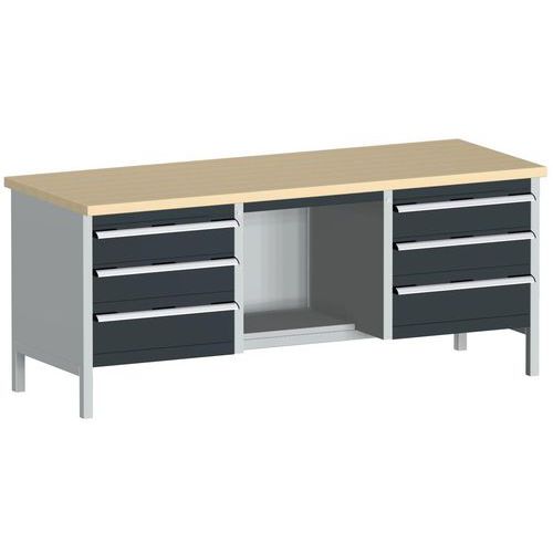 Műhelyasztal Bott Cubio Tároló, 84 x 200 x 75 cm, 6 fiók, polcok, multiplex/linóleum