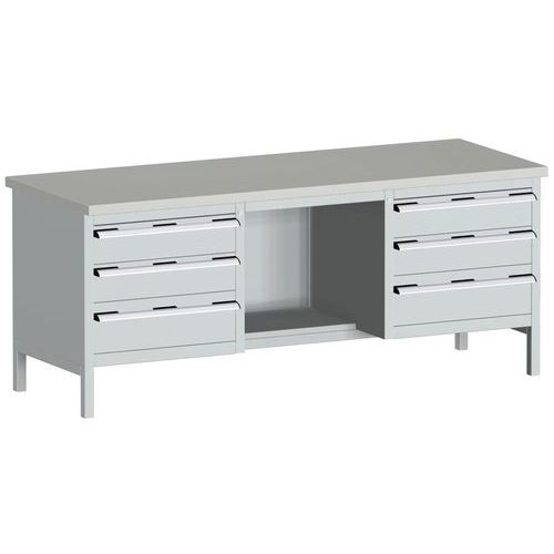 Műhelyasztal Bott Cubio Tároló, 84 x 200 x 75 cm, 6 fiók, polcok, linóleum, szürke-szürke Műhelyasztal Bott Cubio Tároló, 84 x 200 x 75 cm, 6 fiók, polcok, linóleum, szürke-szürke