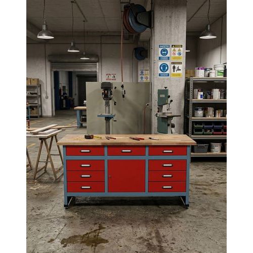 Műhelyasztal Monti, 84 x 170 x 60 cm, 9 fiók, 1 szekrény