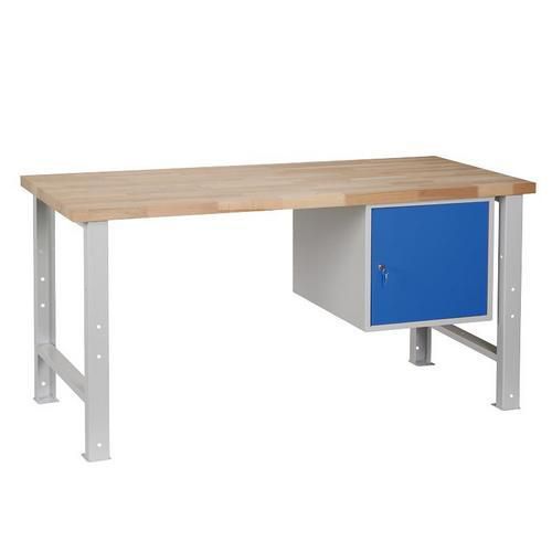 Weld munkapad két színváltozatban, munkalapból, szilárd lábazatból és szekrényből áll.