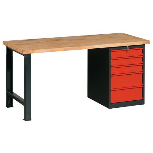 Weld munkapad két színváltozatban, munkalapból és szilárd lábazatból áll.