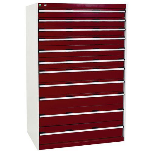 Műhely fiókos szekrény Bott Cubio, 160 x 105 x 75 cm, 11 fiókos, szürke-piros Műhely fiókos szekrény Bott Cubio, 160 x 105 x 75 cm, 11 fiókos, szürke-piros