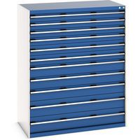 Műhely fiókos szekrény Bott Cubio, 160 x 130 x 75 cm, 11 fiókos, szürke-kék Műhely fiókos szekrény Bott Cubio, 160 x 130 x 75 cm, 11 fiókos, szürke-kék