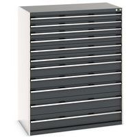 Műhely fiókos szekrény Bott Cubio, 160 x 130 x 75 cm, 11 fiók, szürke-antracit Műhely fiókos szekrény Bott Cubio, 160 x 130 x 75 cm, 11 fiók, szürke-antracit