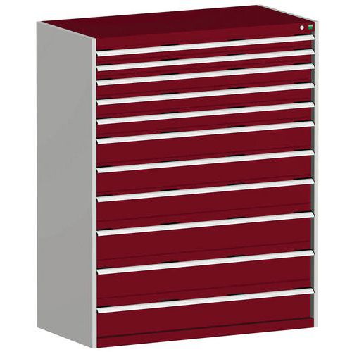 Műhely fiókos szekrény Bott Cubio, 160 x 130 x 75 cm, 11 fiókos, szürke-piros Műhely fiókos szekrény Bott Cubio, 160 x 130 x 75 cm, 11 fiókos, szürke-piros
