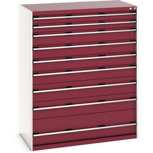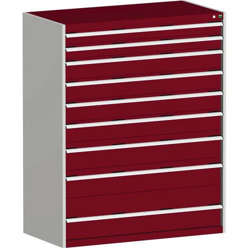 Műhely fiókos szekrény Bott Cubio, 160 x 130 x 75 cm, 9 fiókos, szürke-piros Műhely fiókos szekrény Bott Cubio, 160 x 130 x 75 cm, 9 fiókos, szürke-piros