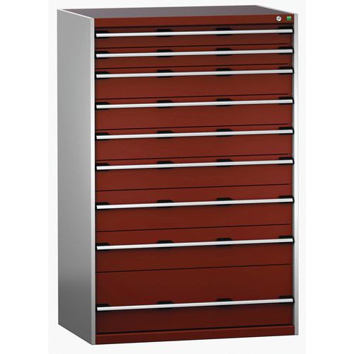 Műhely fiókos szekrény Bott Cubio 200, 160 x 105 x 75 cm, 9 fiókos, szürke-piros Műhely fiókos szekrény Bott Cubio 200, 160 x 105 x 75 cm, 9 fiókos, szürke-piros