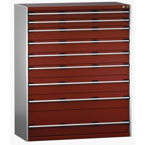 Műhely fiókos szekrény Bott Cubio 200, 160 x 130 x 65 cm, 9 fiókos, szürke-piros Műhely fiókos szekrény Bott Cubio 200, 160 x 130 x 65 cm, 9 fiókos, szürke-piros