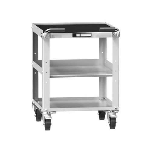 Fém műhelykocsik három polccal. A felső polc gumibetéttel van felszerelve. Két fix és két forgó fékkel ellátott kerék tartozik hozzá. Két fogantyú biztosítja a jobb kezelhetőséget. Három színváltozatban kapható.