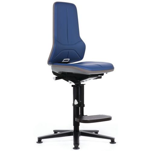 Neon Bimos 9571 műhelyszékváz állandó érintkezéssel, lábtartóval, siklókkal, szürke/kék