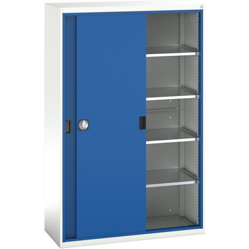 Műhelyszekrény tolóajtókkal, 200 x 130 x 55 cm, 4 polccal, szürke-kék Műhelyszekrény tolóajtókkal, 200 x 130 x 55 cm, 4 polccal, szürke-kék