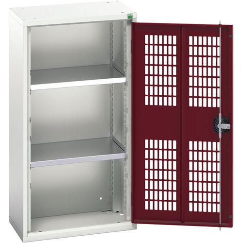 Műhelyszekrény polcokkal Bott Verso, drótajtó, 100 x 52,5 x 35 cm, 2 polc, szürke-piros Műhelyszekrény polcokkal Bott Verso, drótajtó, 100 x 52,5 x 35 cm, 2 polc, szürke-piros
