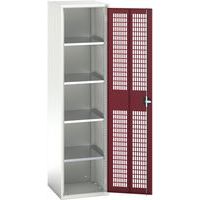Műhelyszekrény polcokkal Bott Verso, drótajtó, 200 x 52,5 x 55 cm, 4 polc, szürke-piros