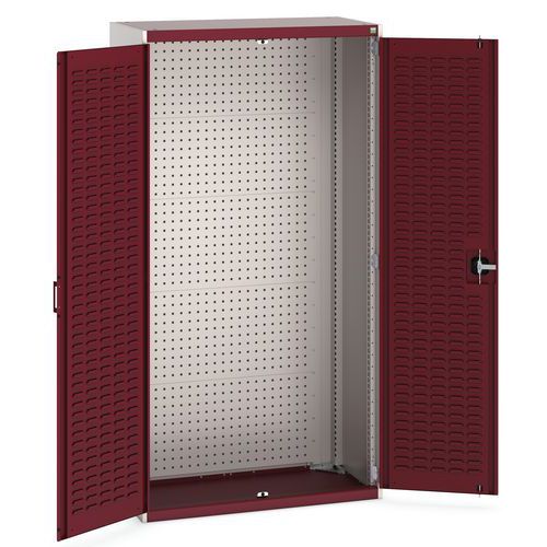 Műhelyszekrények perforált panelekkel szerszámtartókhoz/dobozokhoz, 200 x 105 x 52,5 cm, szürke-piros Műhelyszekrények perforált panelekkel szerszámtartókhoz/dobozokhoz, 200 x 105 x 52,5 cm, szürke-piros