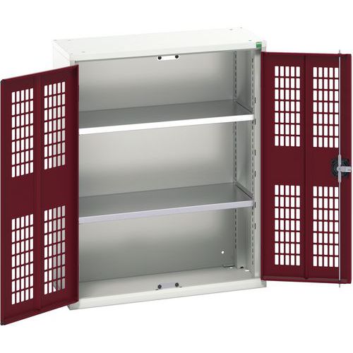 Műhelyszekrény polcokkal Bott Verso, drótajtó, 100 x 80 x 35 cm, 2 polc, szürke-piros Műhelyszekrény polcokkal Bott Verso, drótajtó, 100 x 80 x 35 cm, 2 polc, szürke-piros