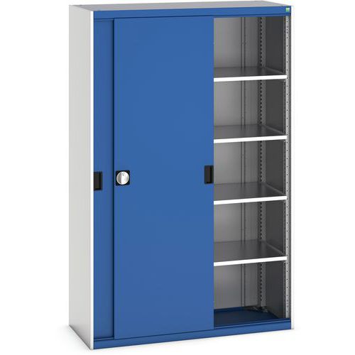 Műhelyszekrény tolóajtókkal, 200 x 130 x 52,5 cm, 4 polccal, szürke-kék Műhelyszekrény tolóajtókkal, 200 x 130 x 52,5 cm, 4 polccal, szürke-kék