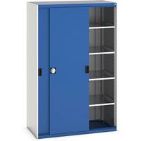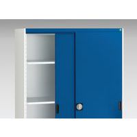 Műhelyszekrény tolóajtókkal, 200 x 130 x 65 cm, 4 polccal, szürke-kék Műhelyszekrény tolóajtókkal, 200 x 130 x 65 cm, 4 polccal, szürke-kék