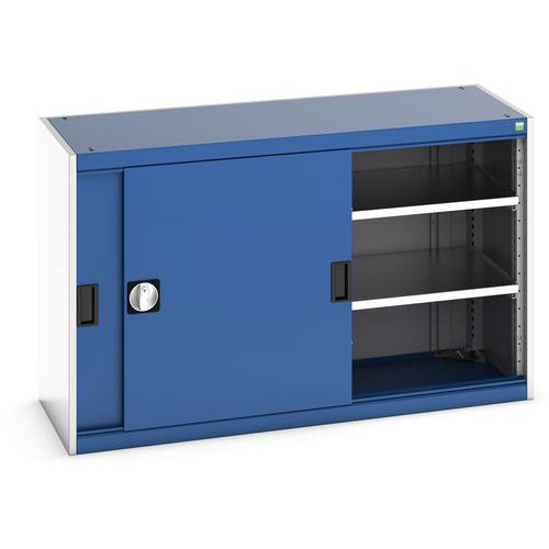 Műhelyszekrény tolóajtókkal, 80 x 130 x 52,5 cm, 2 polccal, szürke-kék Műhelyszekrény tolóajtókkal, 80 x 130 x 52,5 cm, 2 polccal, szürke-kék