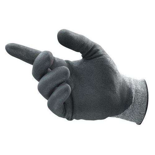 Munka kesztyű műszövetből, félig nitrilbe mártva. Nagyon könnyű és tapadó, védelmet nyújt a kopással és az átvágással szemben. Szilikonmentes. Megfelel az EN 420:2003 + A1:2009 és az EN 388:2003 szabványoknak.