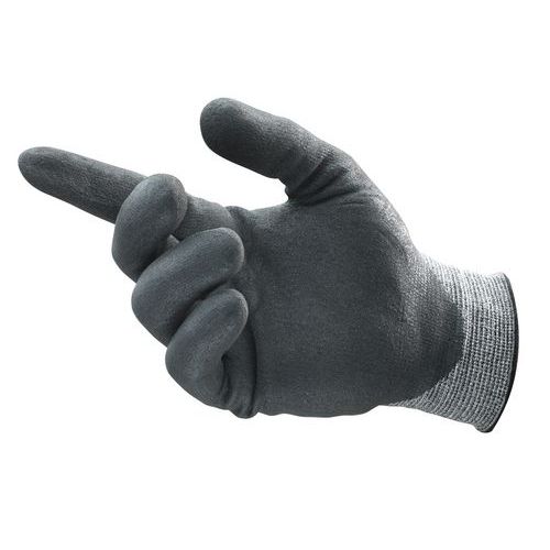 Munka kesztyű műszövetből, félig nitrilbe mártva. Nagyon könnyű és tapadó, védelmet nyújt a kopással és az átvágással szemben. Szilikonmentes. Megfelel az EN 420:2003 + A1:2009 és az EN 388:2003 szabványoknak.