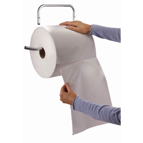 Falra szerelhető tartó ipari papírtörlő tekercsek számára. Maximális tekercsszélesség 30 cm és maximális átmérő 30 cm. Maximális terhelhetőség 3 kg. 16 mm átmérőjű fémcsőből készült.