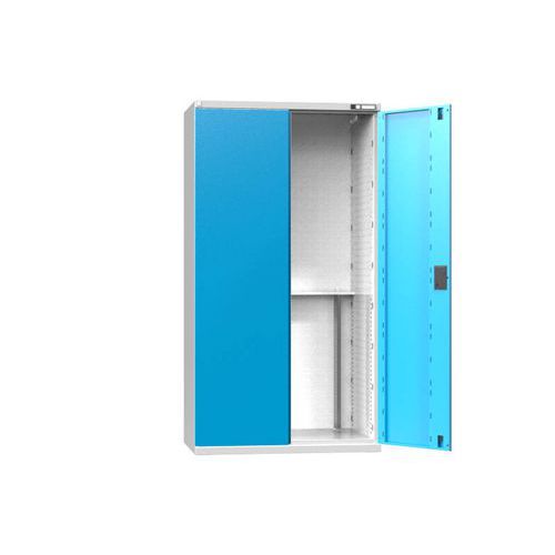 A szekrénytest szárnyas ajtókkal záródik, amelyek 180°-ban elforgatható zsanérokkal rendelkeznek. Hengeres tengelytávú zárral záródik. Az alapfelszereltség része a furatazonosító rendszer és az okosbútor funkcióval ellátott címke. A szekrényekbe ZC elrendezésű (54x27) fiókok akaszthatók.