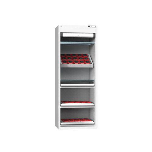 A szekrénytest világos szürke RAL 7035 színű, kerékzáras alumínium redőnnyel záródik. Az alapfelszereltség része a furatazonosító rendszer és az intelligens bútor funkcióval ellátott leírás. Lehetőség van ZD elrendezésű (36x27) fiókok a szekrényekbe akasztására.