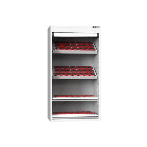 A szekrénytest világos szürke RAL 7035 színű, kerékzáras alumínium redőnnyel záródik. Az alapfelszereltség része a furatazonosító rendszer és az okosbútor funkcióval ellátott címke. A szekrényekbe ZC (54x27) elrendezésű fiókok is felakaszthatók.