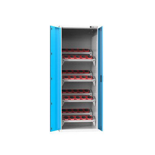 A szekrénytest szárnyas ajtókkal záródik, amelyek 180°-ban elforgatható zsanérokkal rendelkeznek. Hengeres tengelytávú zárral záródik. Az alapfelszereltség része a furatazonosító rendszer és az okosbútor funkcióval ellátott címke. Lehetőség van ZD elrendezésű (36x27) fiókok a szekrényekbe akasztására.