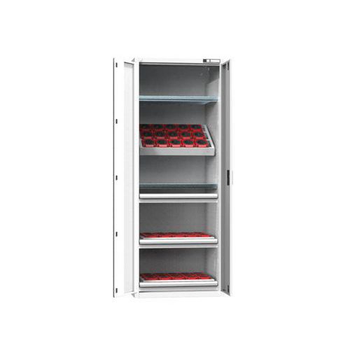 A szekrénytest szárnyas ajtókkal záródik, amelyek 180°-ban elforgatható zsanérokkal rendelkeznek. Hengeres kerékzárral záródik. Az alapfelszereltség része a furatazonosító rendszer és az okosbútor funkcióval ellátott címke. Lehetőség van ZD elrendezésű (36x27) fiókok a szekrényekbe akasztására.