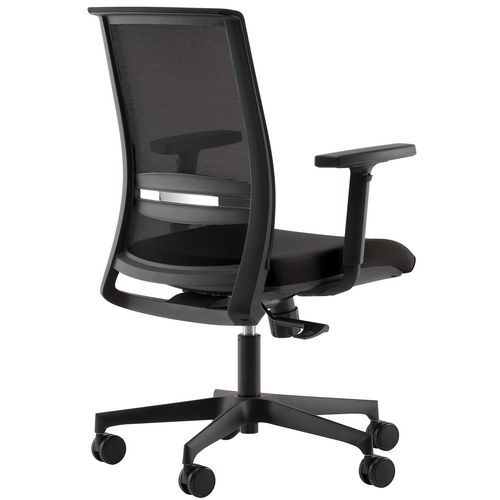 Irodai szék rendkívül kényelmes hálós háttámlával és állítható kartámaszokkal. Háttámla állítható magasságú deréktámlással. Az ülés és a háttámla szinkron mozgása, 4 pozícióban rögzíthető.