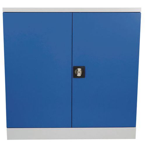 Alacsony fém szekrény mappák és dokumentumok tárolására. 180°-ban nyitható ajtószárnyakkal. Két polccal az áttekinthető rendszerezésért. A polcok maximális terhelhetősége egyenként 60 kg. A dokumentumok védelmét zár biztosítja. Gyorsan és egyszerűen, szerszámok nélkül összeszerelhető.