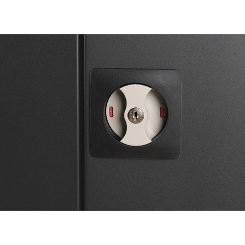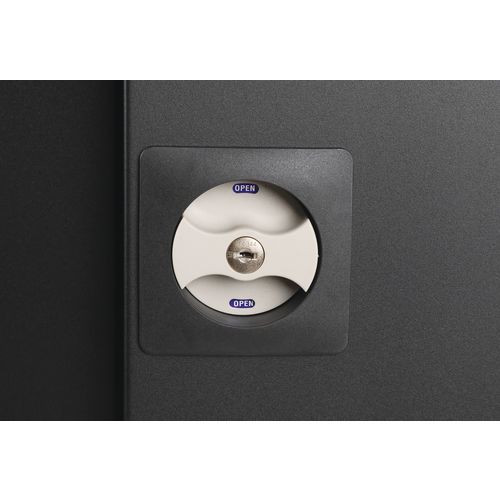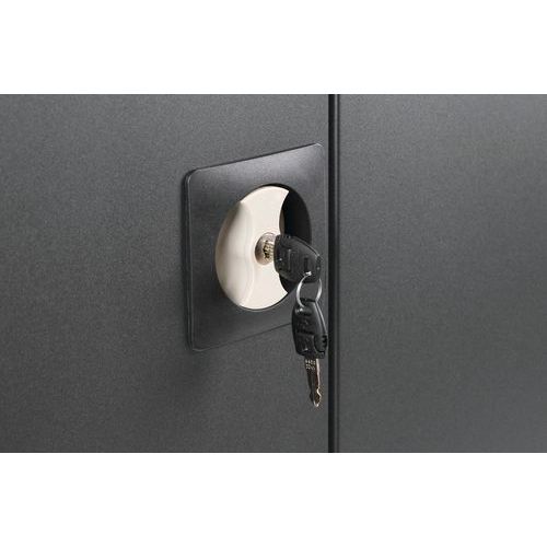 Alacsony irattartó komód mappák és dokumentumok tárolására. 180°-ban nyitható ajtószárnyakkal. Két polccal az áttekinthető rendszerezésért. A polcok maximális terhelhetősége egyenként 60 kg. A dokumentumok védelmét zár biztosítja. Gyorsan és egyszerűen, szerszámok nélkül összeszerelhető.