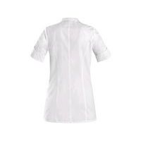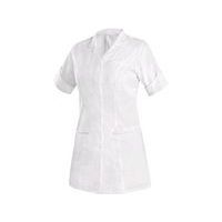 Női blúz rövid ujjal, hercegnős szabású, fedett gombos rögzítéssel, 3 szatén szegéllyel díszített elülső zsebbel. Felhasználási javaslat: wellness, szépségszalonok, magán rendelők, klinikák és nagy egészségügyi létesítmények, sürgősségi és egészséges Méret: 36-60 Külső anyag: 62% pamut 35% poliészter 3% elasztán Szín: fehér